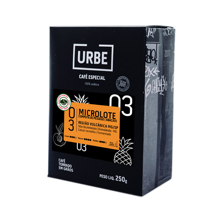 O Café Especial URBE 03 é composto por Microlotes surpreendentes garimpados nas lavouras de pequenos produtores parceiros. Tem origens variadas e notas sensoriais mais complexas. Este lote, possuí notas de pêssego...