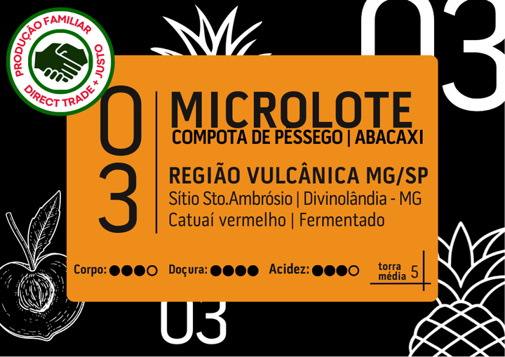 Este lote, possuí notas de pêssego e abacaxi, o que concede uma acidez leve com um corpo doce.