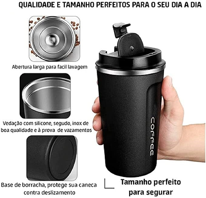 Este Copo Térmico Portátil pode ser usado para bebidas frias ou quentes. Fabricado em aço inoxidável, é resistente à corrosão, e é muito prático de usar.